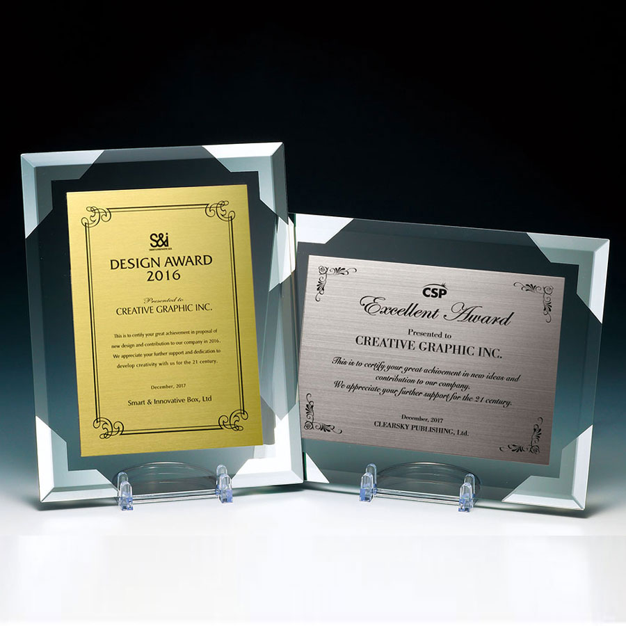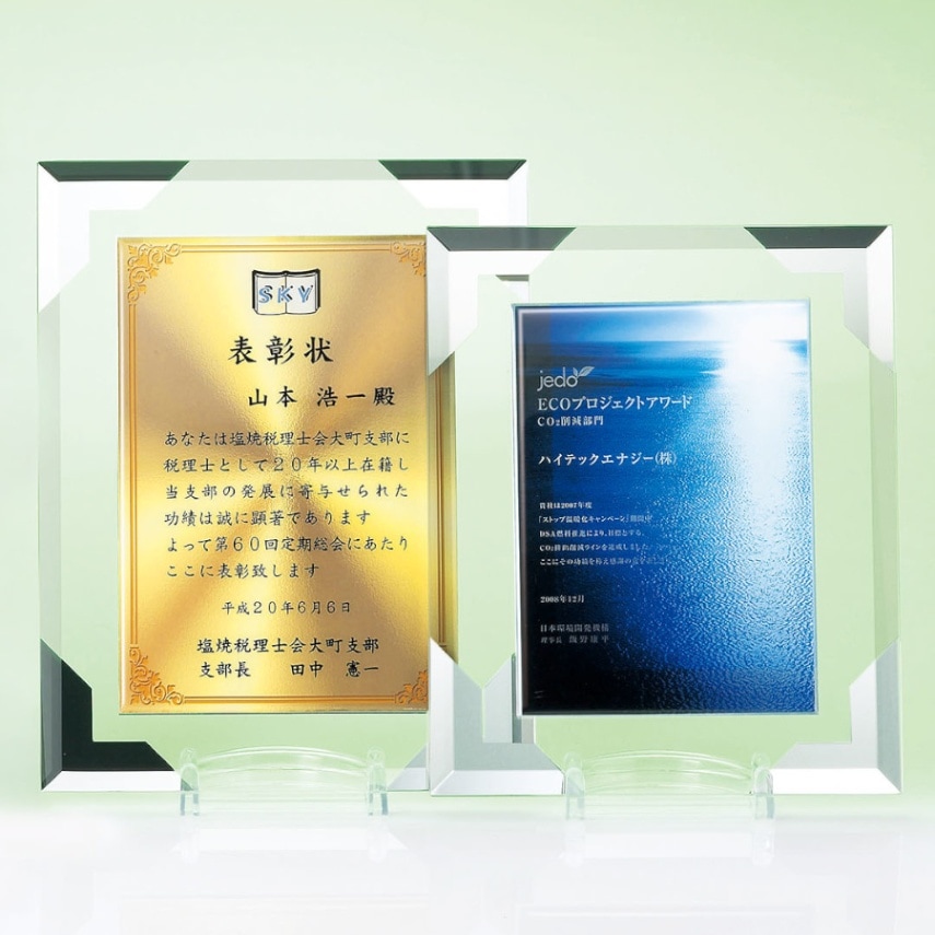 オリジナルデザイン表彰楯 JP-L01-02-アルミ表彰板付ガラス楯