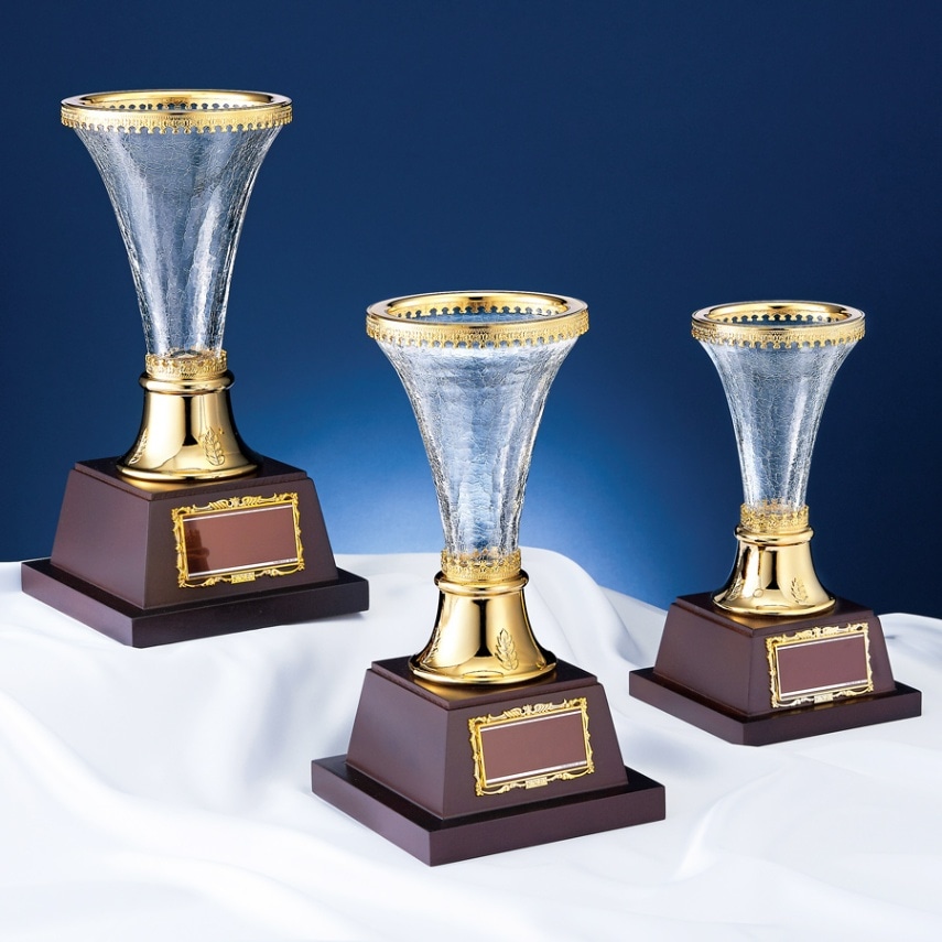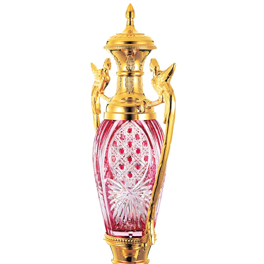色を被せたクリスタルガラスに伝統模様を施した江戸前賞杯の至宝。