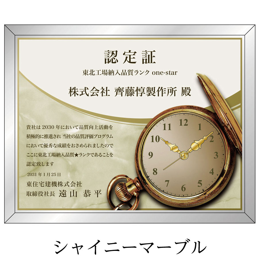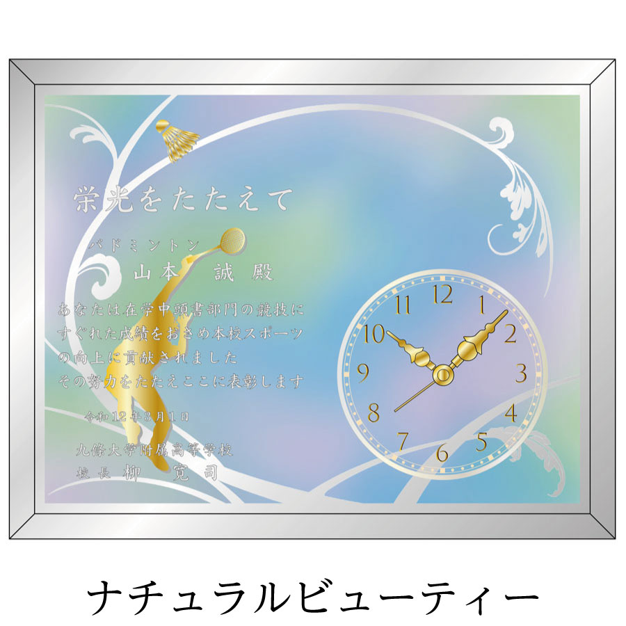 ミラー楯とアナログ時計が組み合わさった、実用的な表彰ギフトです。