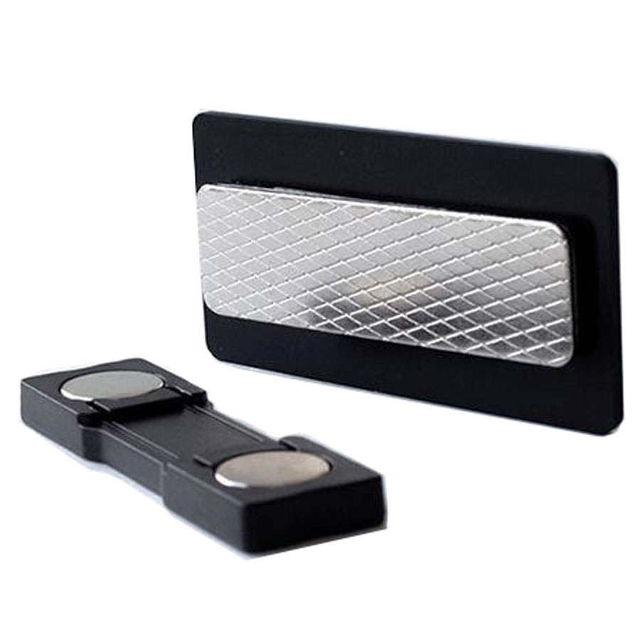 基本裏は塩ビ板に両用ピン付きです。衣類を傷めないマグネットタイプにすることもできます。(別途費用)