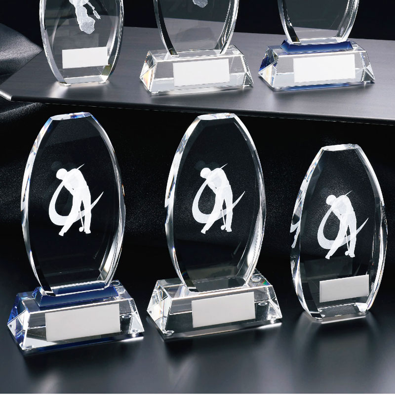 美しいクリスタルトロフィー JP-CM-412は、どんなゴルフイベントでもその場を煌めかせます。クリアなフォルムと高品質な3D加工が施されたこのトロフィーは、受賞者の輝かしい瞬間を一層引き立てます。表彰式や記念行事に最適で、見る人すべてを魅了するデザインです。